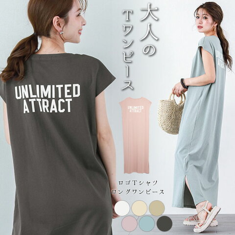 バックロゴ Tシャツワンピース レディース ロゴT ロングワンピース サイドスリット マキシ丈 ゆったり 部屋着 ルームウエア コットン 可愛い 低身長向け 小柄 メール便 2021春夏新作 C/フリー 【lgww-at4565】【即納:1-5営業日】【送料無料】メ込