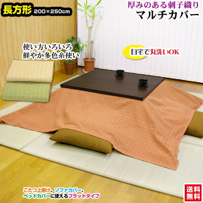 【あす楽】 マルチカバー こたつ 上掛け ベッドカバー 長方形送料無料 綿刺子 綿 厚地生地で刺子織長方形 250×200cm 丸洗いOK綿 刺し子 ベッドスプレッド【★★】
