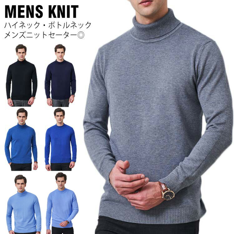 ハイネック ボトルネック ニットセーター メンズ 防寒 ニット タートルネック 長袖 秋冬 ニット セーター 無地送料無料